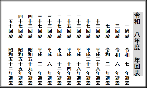 七回忌、十三回忌、十七回忌、…五十回忌と